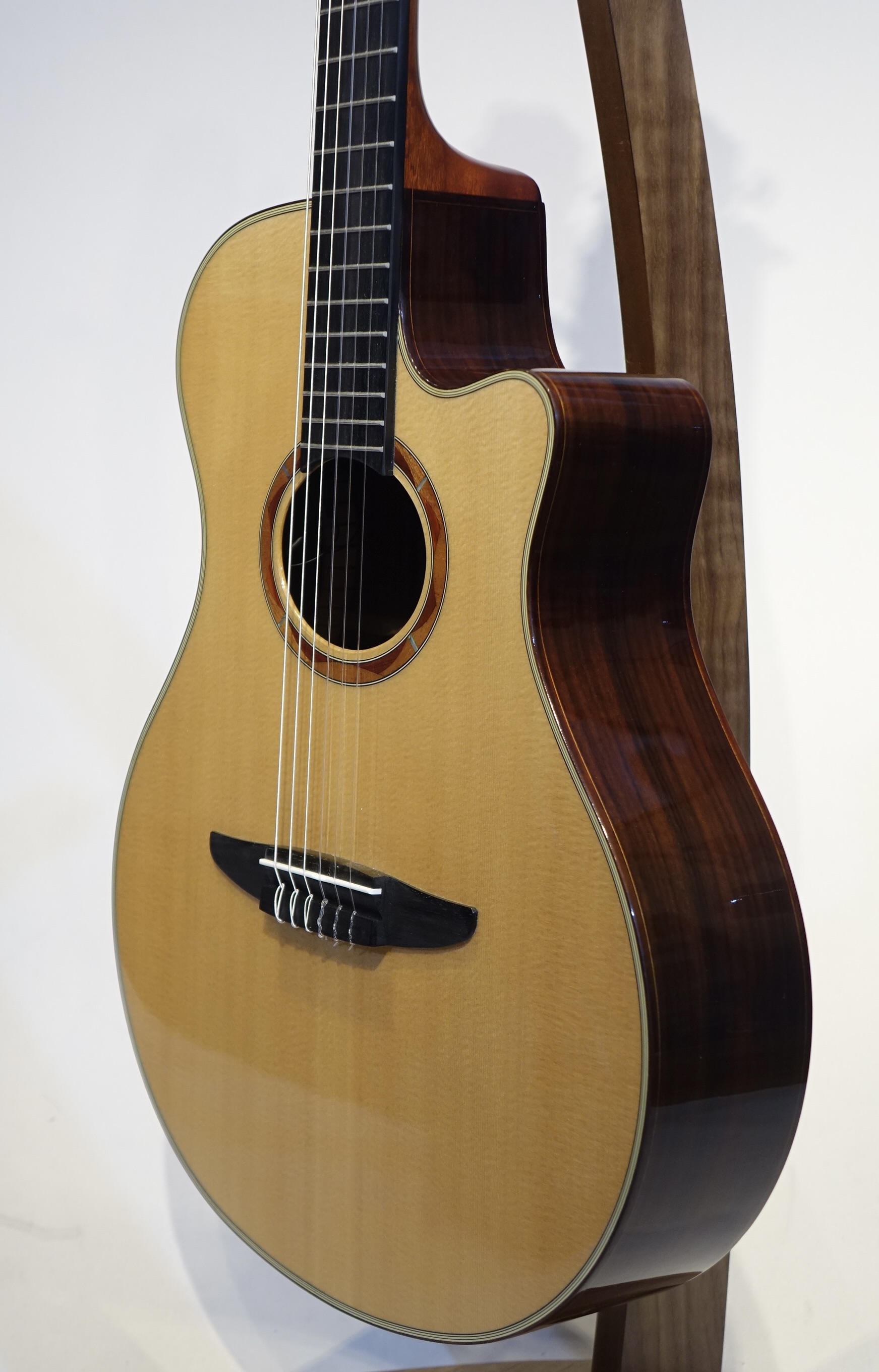 NXシリーズは、ナイロン弦ギターのサウンドの特徴である『やわらかく、丸みのある音色』をそのままにラインアウトできる、新感覚のエレクトリックナイロンストリングギターです。厳選したボディ材を用い丁寧に作り上げたギターが生み出す上質なナイロン弦サウンドを、最新のピックアップ&プリアンプシステムがありのままに表現します。