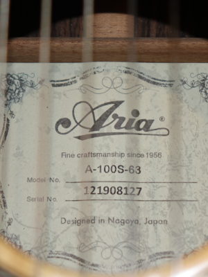 アリアA100Sの630mmの中古ギターを入荷しました。アリアの人気ギターでオール単板です。状態が良く、目立つ傷も見当たりません。