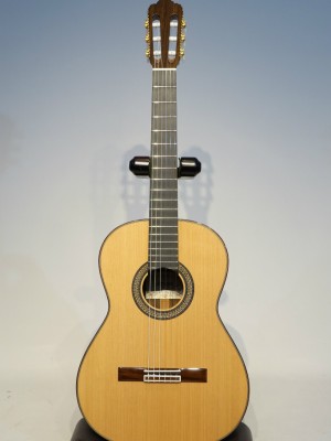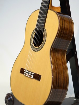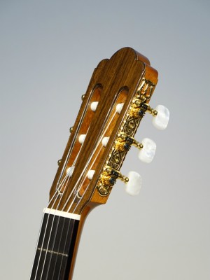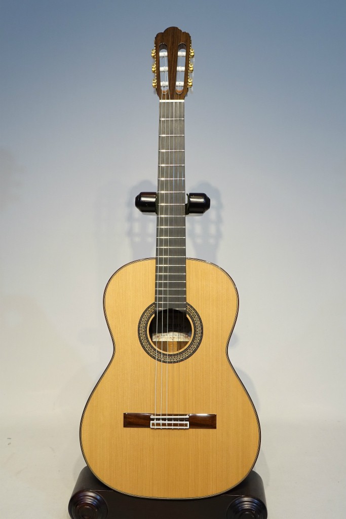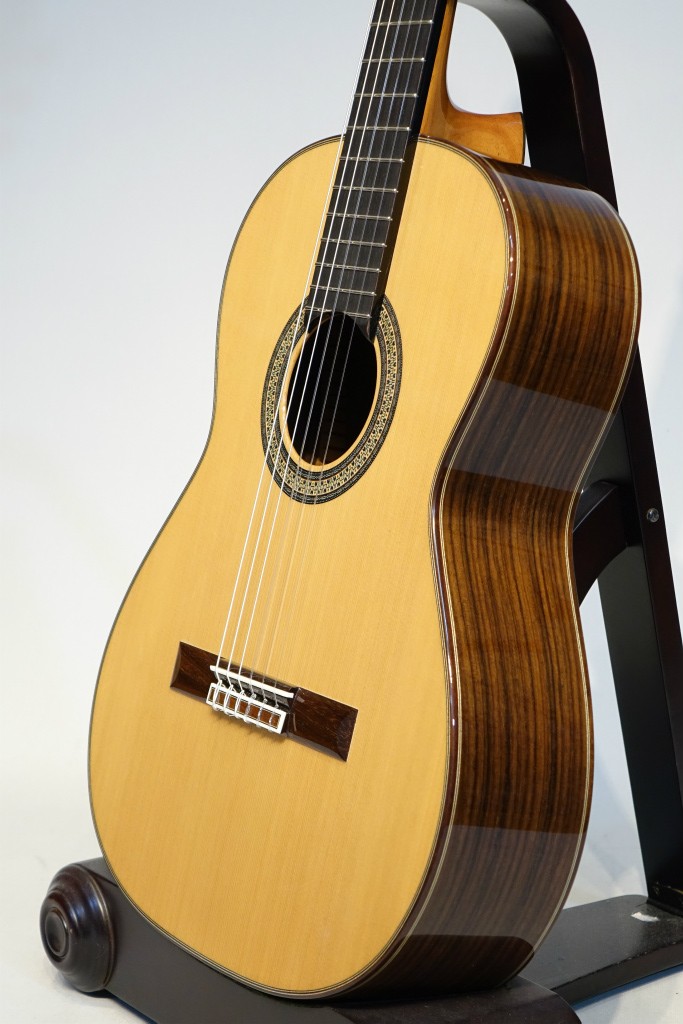 スペイン式製法を採用。ネックブロックを中心に側板・表裏板を組み上げる伝統的な手工製法により、ボディからヘッド頂点に至るまでのギター全体が弦と共に振動し、豊かな響きを産み出します。