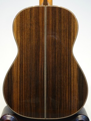 この楽器はフランスの名工ダニエル・フレドリッシュなどが採用している側板二重構造のダブルサイドを使うことで豊かな音量と速いレスポンスを実現しています。側板の二重構造とは厚さ2ミリの板を二枚張り合わせることで横板を頑健にして、表板に生じた振動を逃すことなく音に変換すると言うものです。この楽器は2枚ともローズウッドを採用しており、明るい音で気持ちの良い豊かな音量で鳴ってくれます。