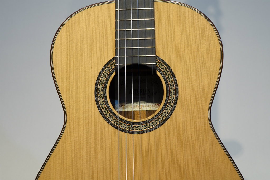 豊かな響きと音質で人気のアストリアスのプレリュードに630㎜。従来のアストリアス630㎜はナット幅とボディーが標準サイズでしたが、新しく設計を見直してナット幅50㎜とし、ボディーも少し小ぶりになり更に弾き易くなりました。この楽器は表板が松なので杉に比べて締まった芯のある音で良く鳴ります。ワークショップの職人からのプレゼント価格品ともいえる逸品です。