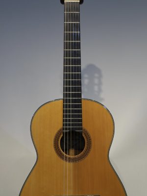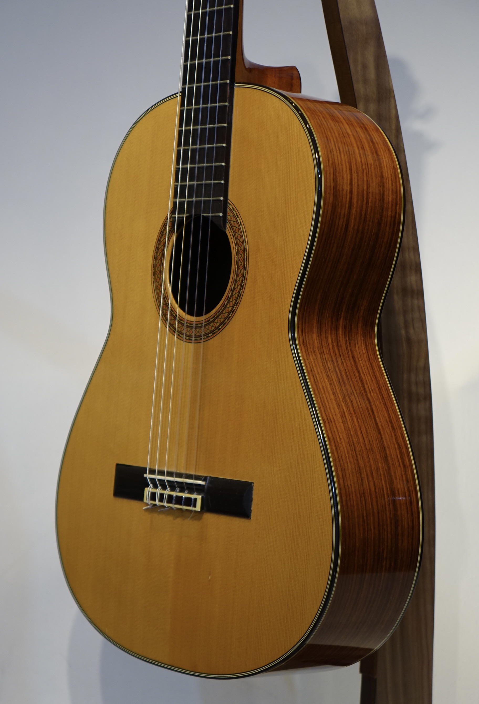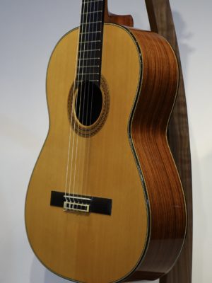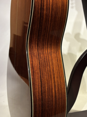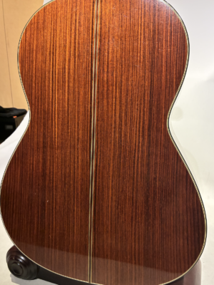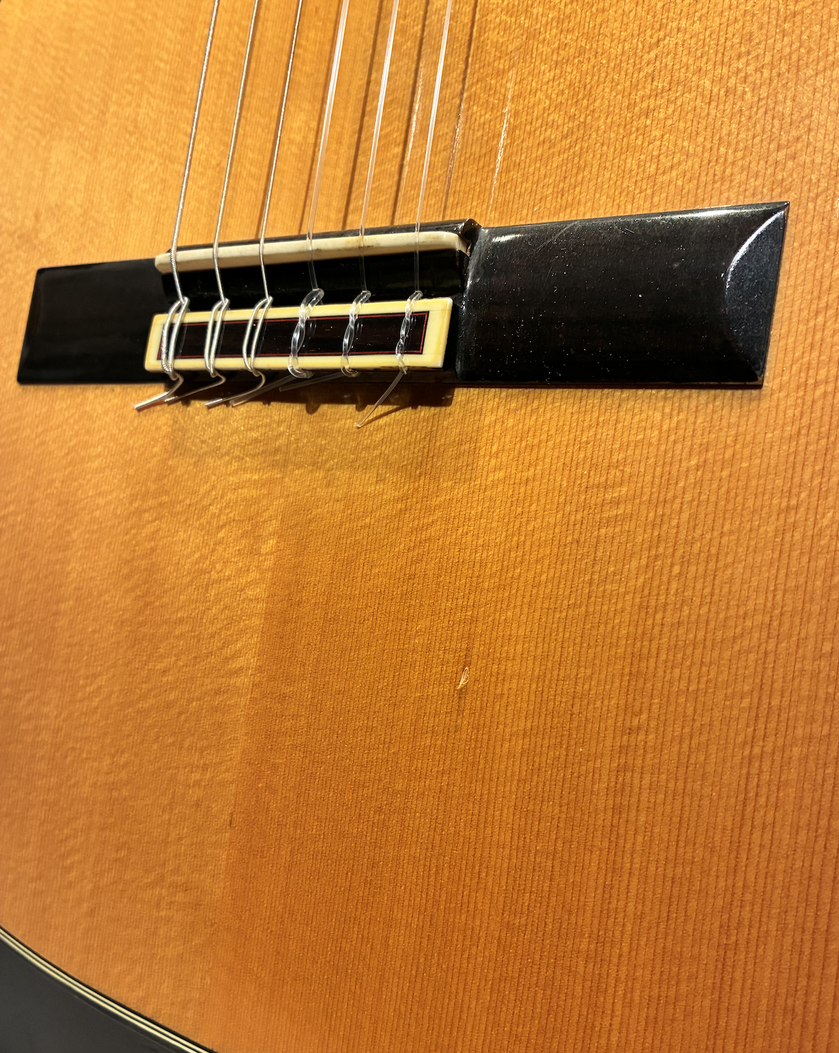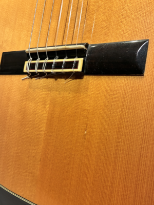 エコールESM-1000の中古を入荷しました。エコールは小平で製作されているギターです。表板は単板の杉、横裏は合板のローズウッドが使用されています。表板のブリッジ下に打痕、裏板は細かな擦れ傷があります(写真参照)。その他は状態の良い楽器です。