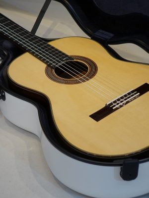 この楽器はハウザーモデルで、期待通りの芯のある粘りのある音でギュンと鳴ってくれる。ハウザーの良い所を継承しながら彼の求める音に仕上がっていると言える。各音のバランスも抜群で大きなホールでも隅々まで響き渡ってくれるでしょう。弦長640mm、ナット幅51mmの特注品で日本人には弾き易く、弾いていて楽しく鳴る楽器です。