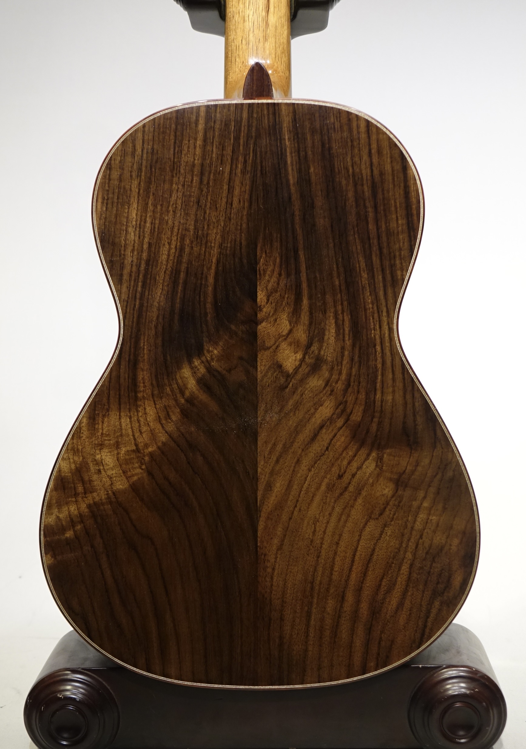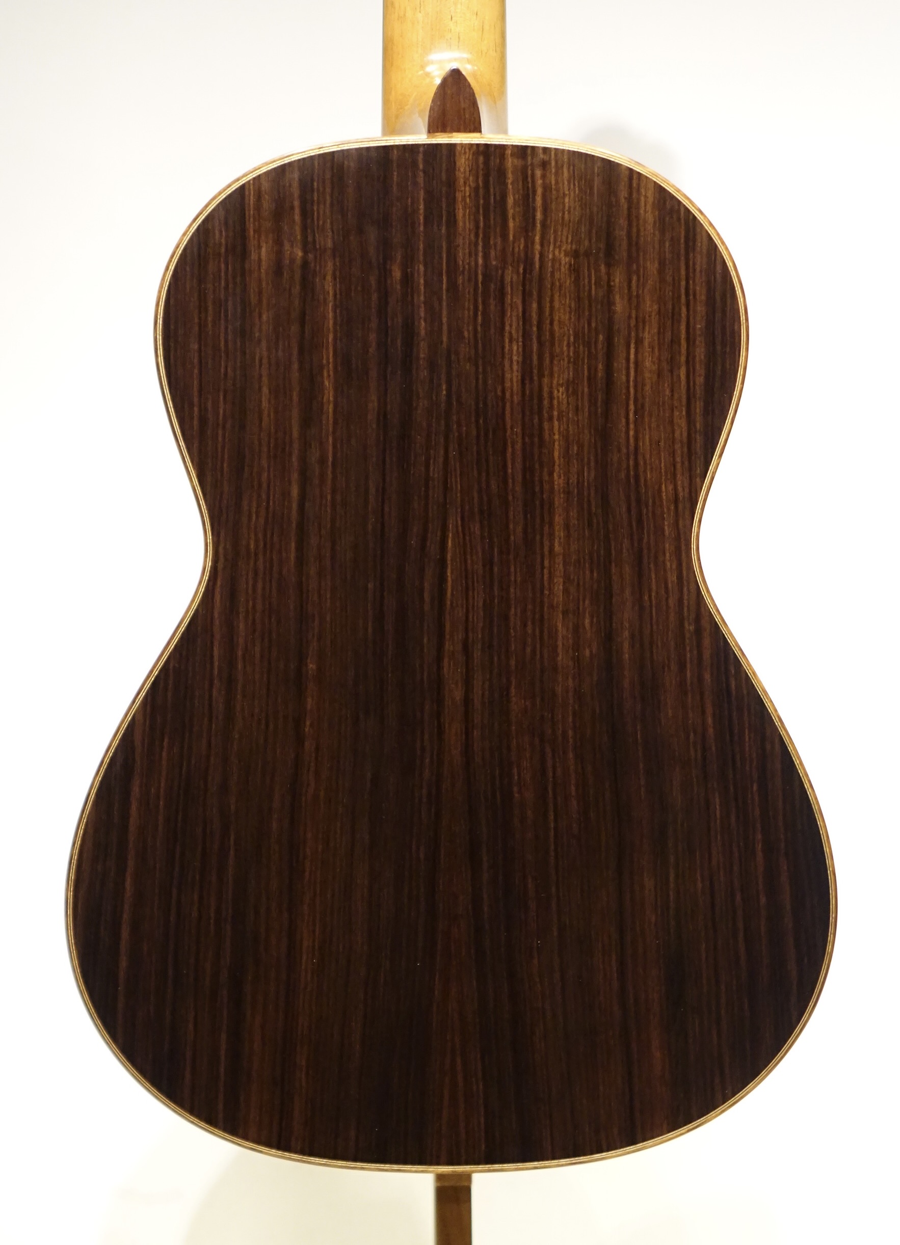 裏板はインディアンローズウッドですが、非常にユニークな木目で抜群の存在感を示しています。