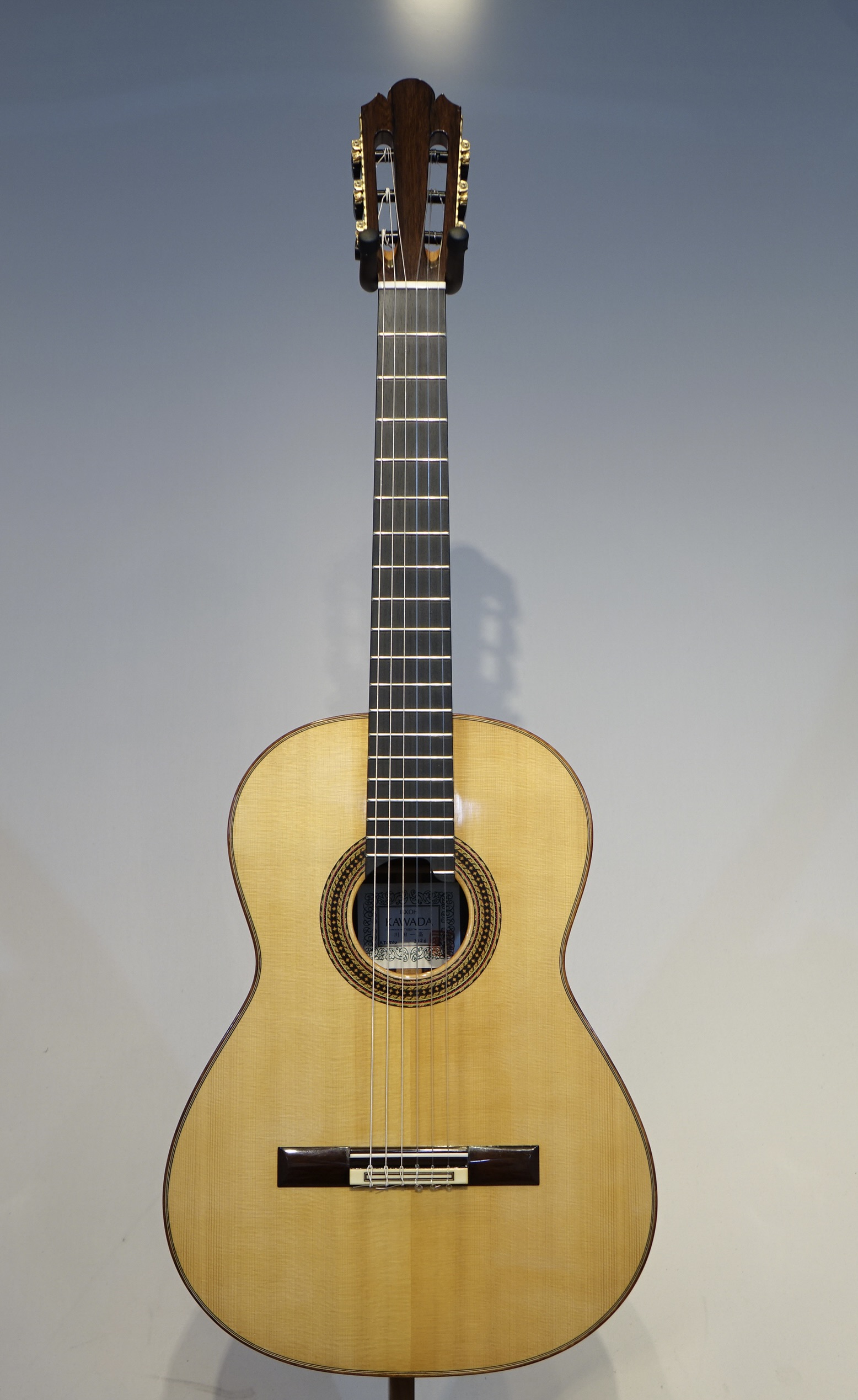 川田一高氏は高知市在住。故 田村満氏にギター製作の全てを学び、1974年に独立。