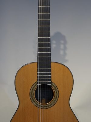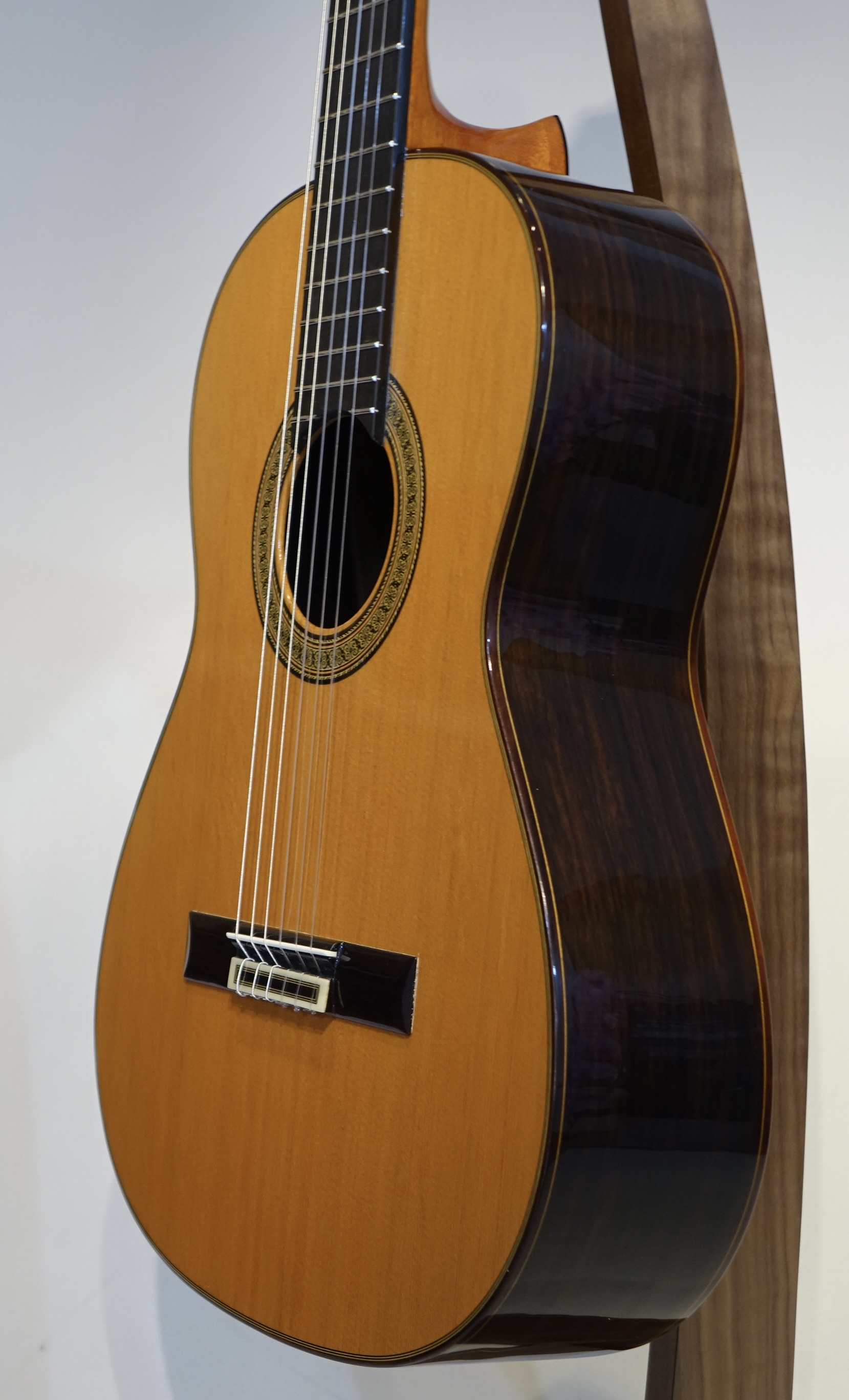 音鳴りがとても良く、気持ちよく弾けます。表面板は杉材で全体的な響きの印象派甘いですが、1弦は硬めで明るい響きです。