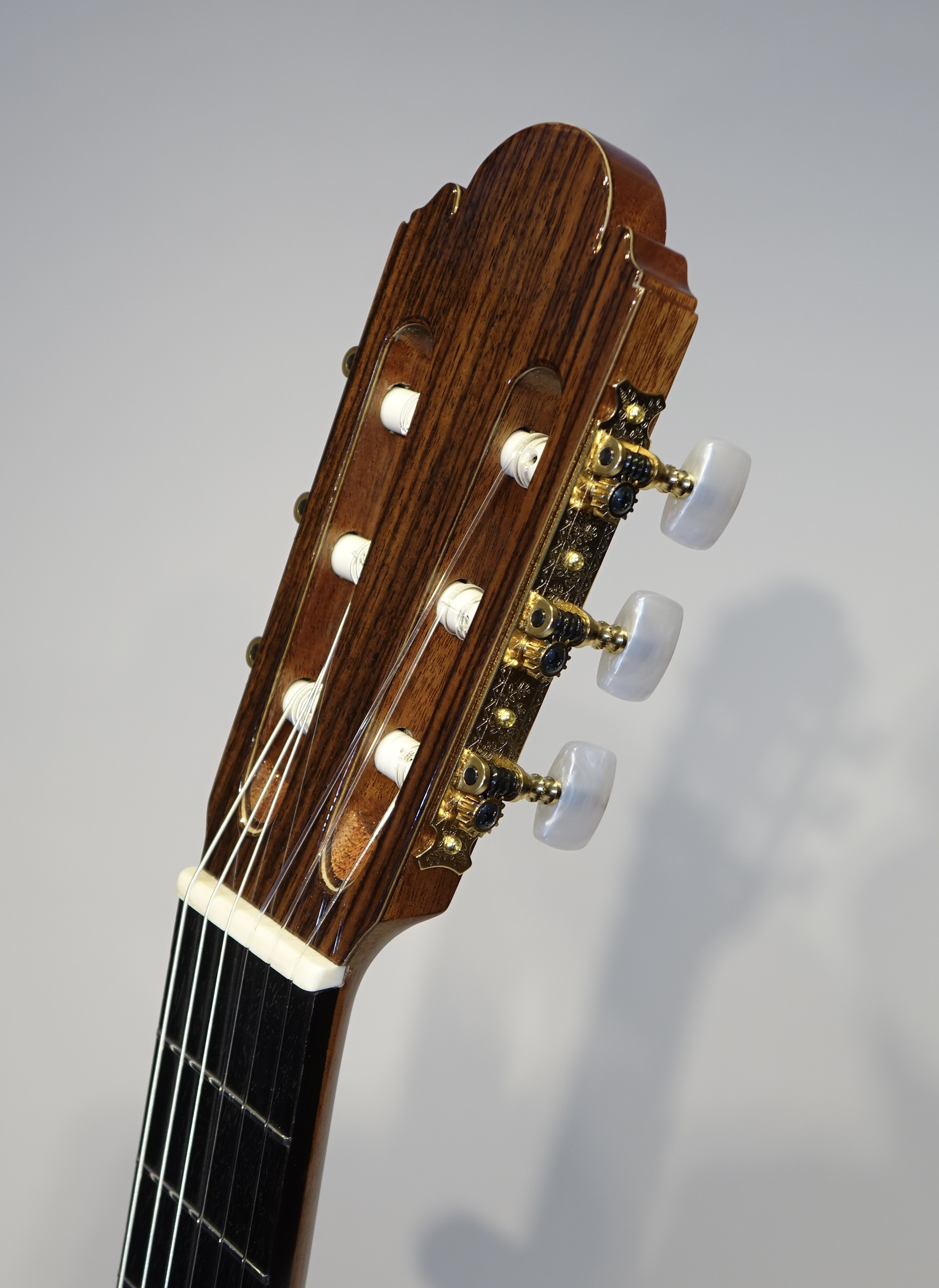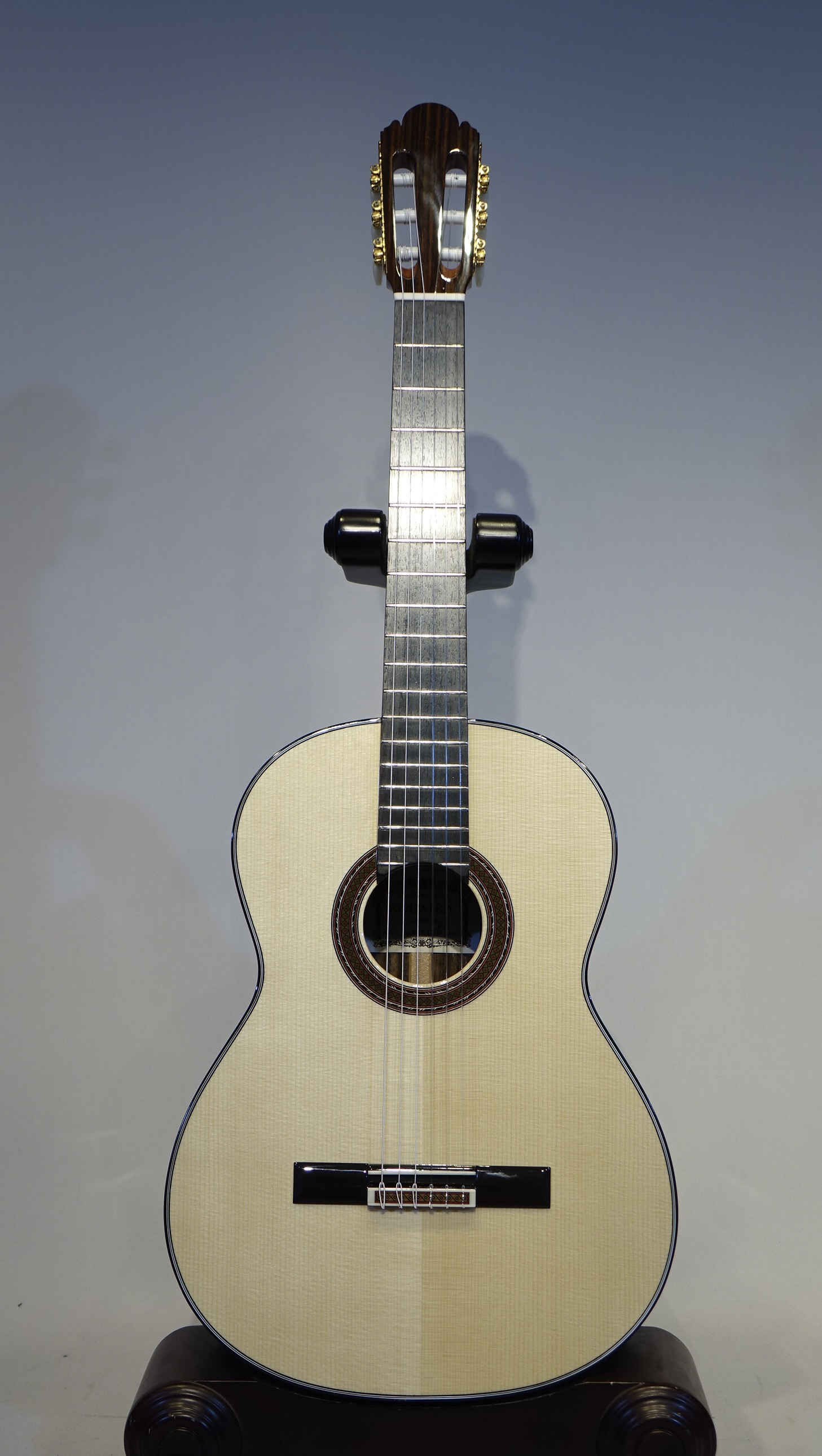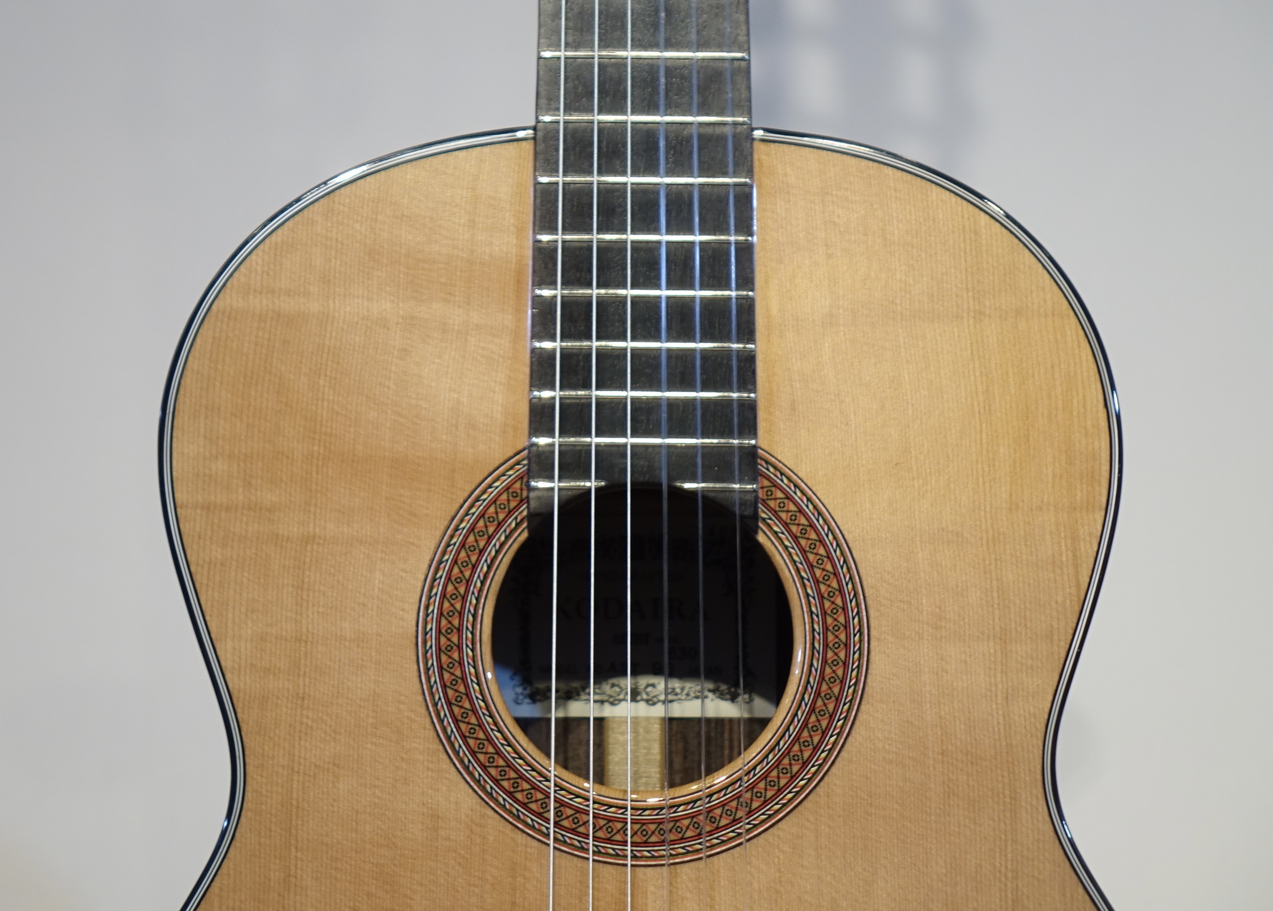小平ギターの最上位モデルで、表面板の杉材、横裏板のローズウッド等、各部材に上質な材料を使用しています。甘く重厚な響きは、小平の技術力とコストパフォーマンスの高さを感じさせてくれます。