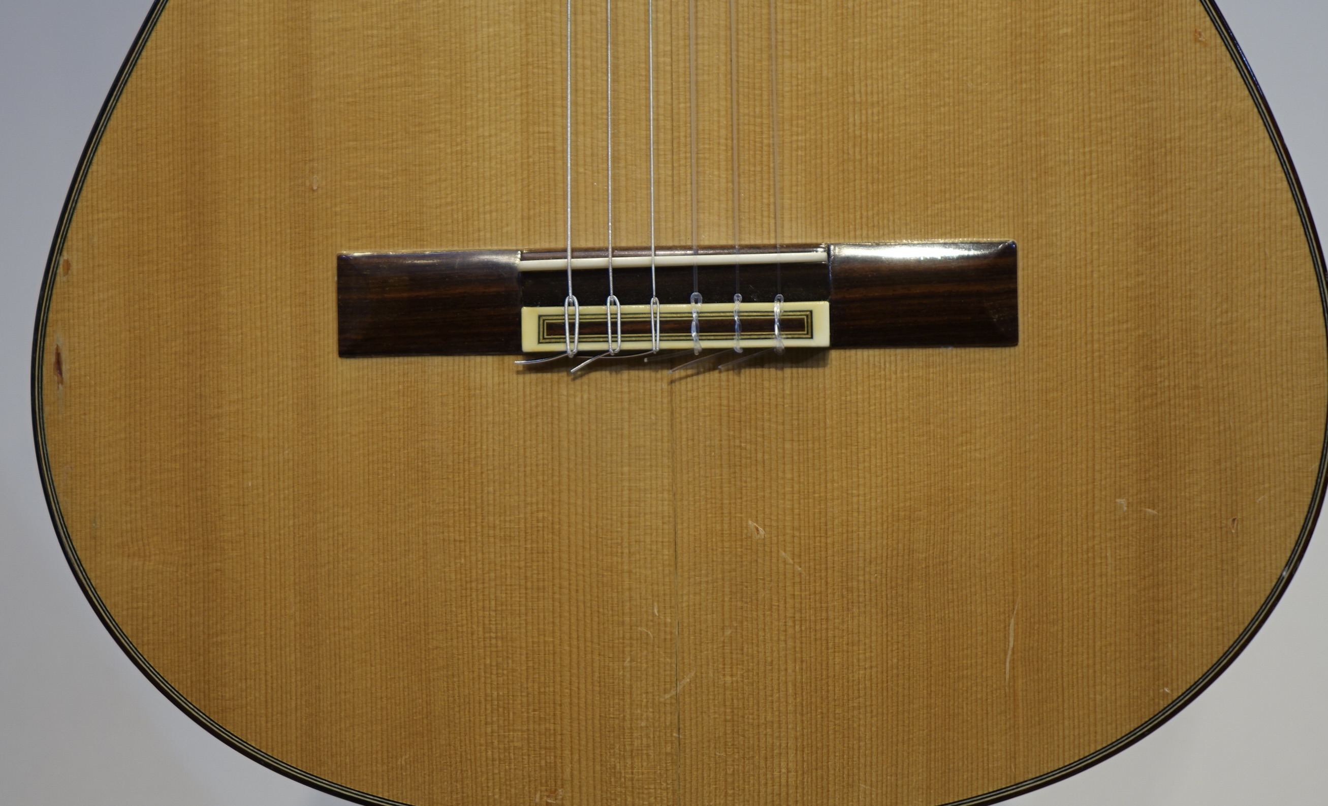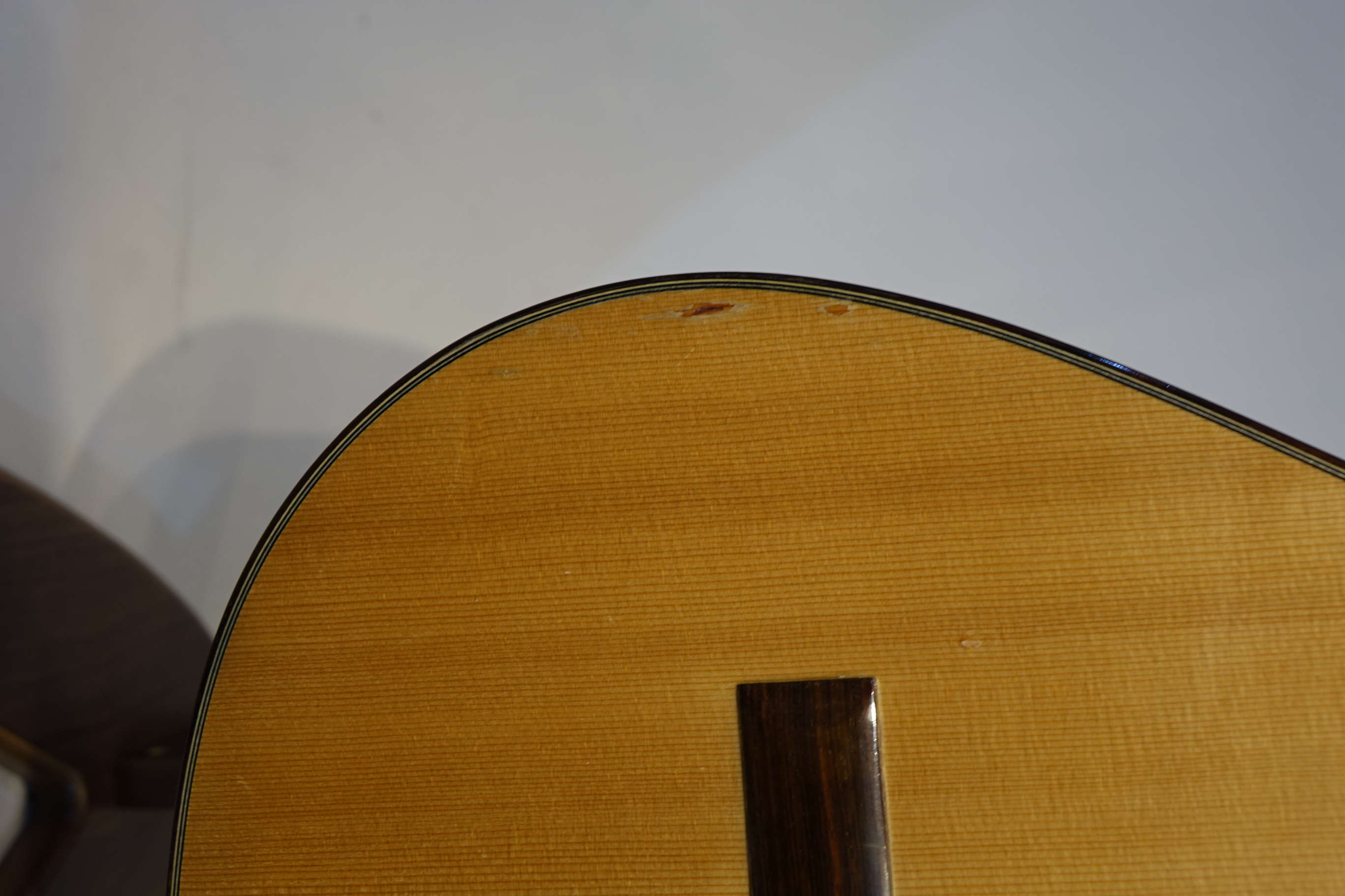 表面板のブリッジ下には、割れの跡があります(修理済み)ヘッド裏には、削れた傷があります。
