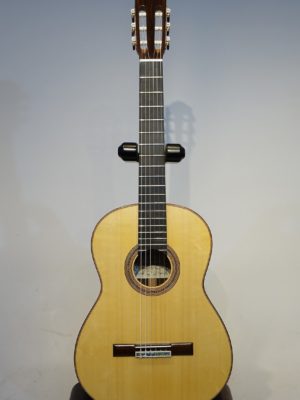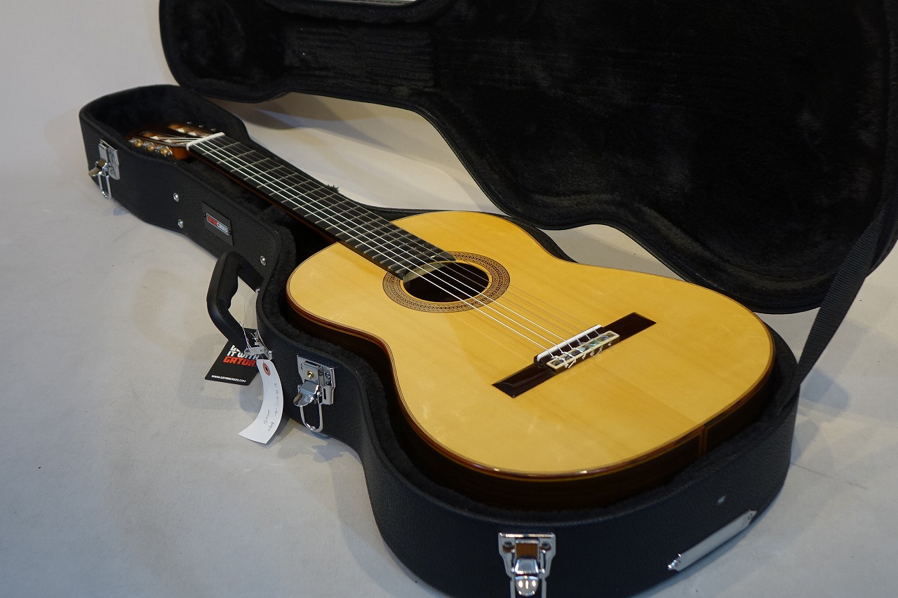しかも弦長640mm、ナット幅52mm、ナット上の1弦ー6弦幅41.5mmの特注品で、弦高が⑥3.5㎜、①2.6㎜と弾き易さも抜群の楽器です。イチ押しの楽器です。
