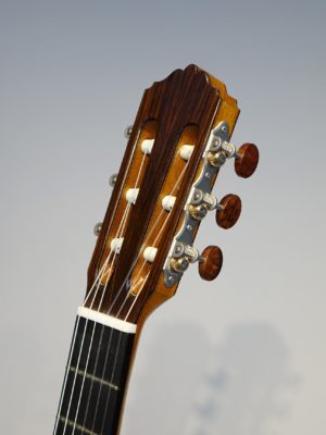 ヨージェフ・エトベシュがショパンの編曲集やバッハのゴルトベルク変奏曲の録音に彼のギターを使用したことで有名になりました。邦人ギタリストでは新井伴典、松田弦、そしてパヴェル・シュタイドルなども彼の楽器を使用しています。ルーミッヒはドイツ人ながら19歳からグラナダでギター製作を学んだこともあり、ドイツ的な引き締まった感じの明瞭な発音が得られるとともに、スペイン的な甘美さの漂う音を発するギターです。