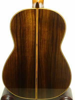 最高のローズウッドを使用しており、深みのある音ながら、すっきりとした音で分離がとても良く和音が美しく響きます。低音から高音までのバランスも抜群で、12F以上の高い音も良く鳴ります。強弱も付けやすく各声部の弾き分けがし易く立体的な音楽を気持ちよく奏でられる素晴らしい楽器です。