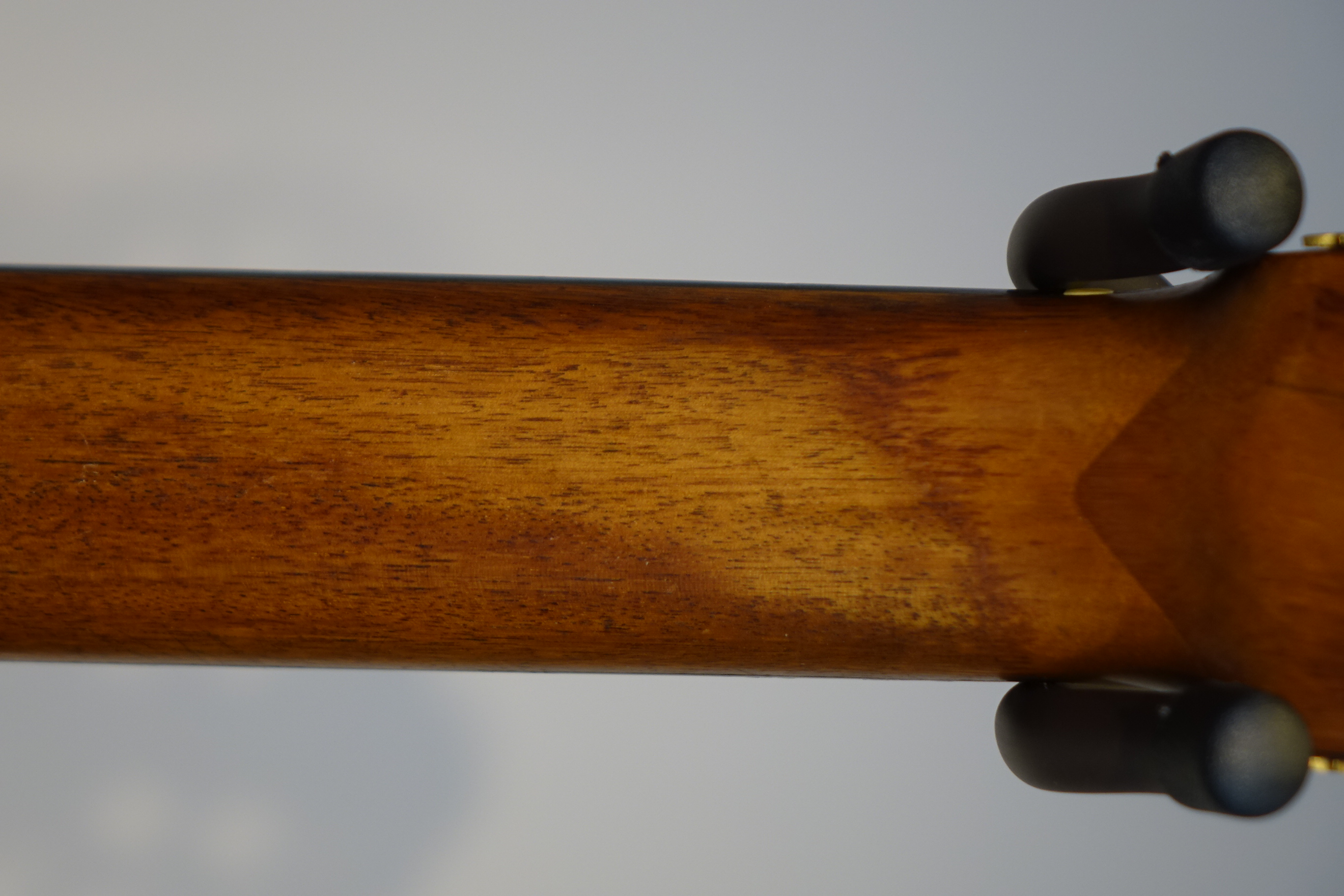 0フレット裏(ヘッドとネックの境目)あたりにクラックを修復された跡があります。触るとやや凹凸を感じます。(写真参照)