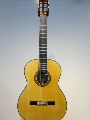 1931年スペイン、マドリッド生まれ。キャリアを家具職人からスタートさせた。ギターコンクールでの入賞歴もあるなど、その腕前は当時かなりのものだったようです。楽器はどれも一流の工芸品としての完成度の高さも備え、スペインの名工たちの作品の中でも独特の気品を漂わせ、生涯にわたり演奏と製作を続け、1000本を越えるギターを完成さている。