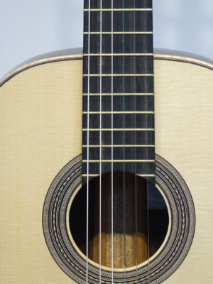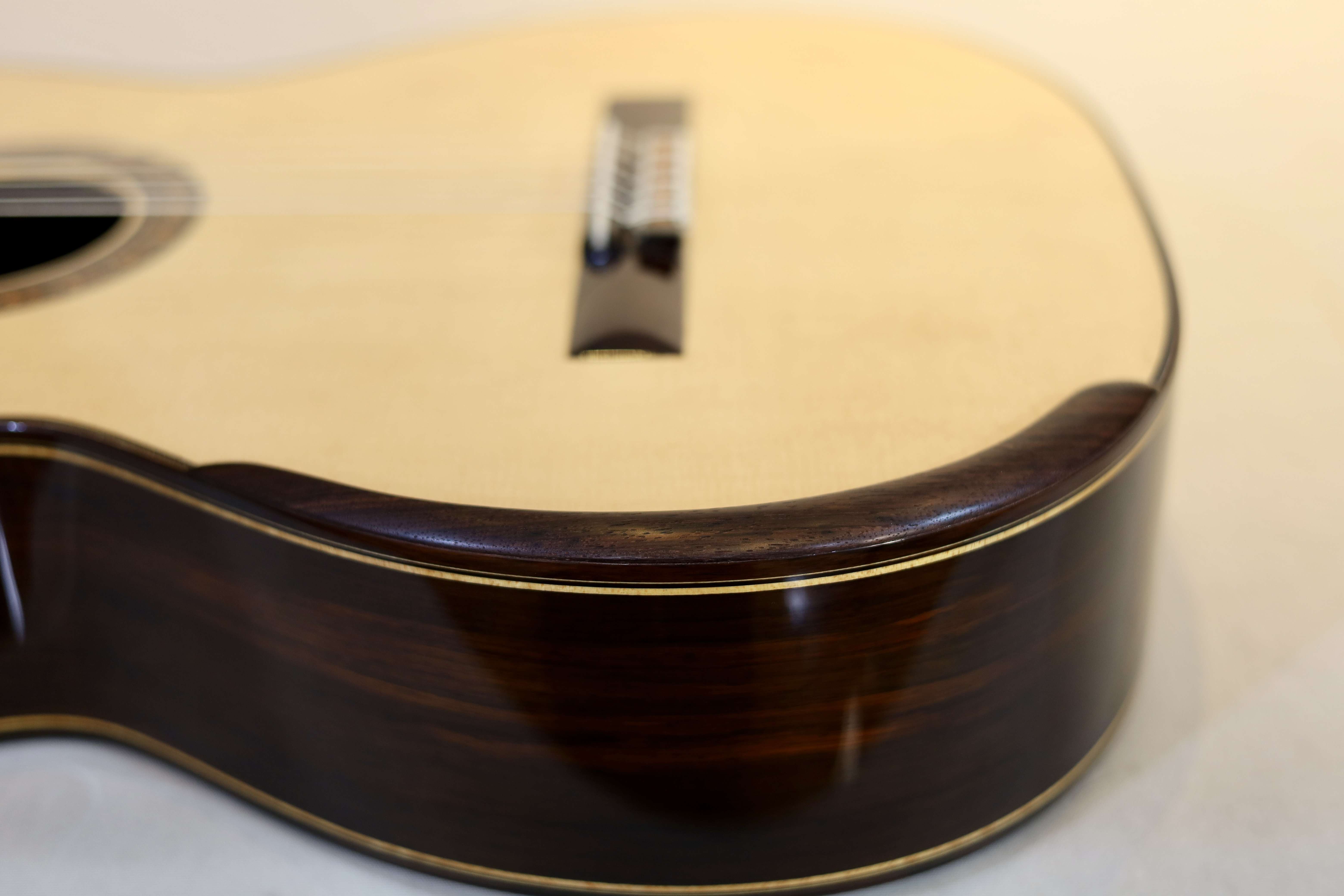 低音から高音まで、どこをとってもリッチで素晴らしい響きす。木質感のある響きのギターを好む方は一度ご試奏していたきたい一本です。