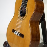 この楽器は弾きやすい630mmスケール、50mmナット幅モデルで、この価格で630㎜を作っている製作家は少なく希少な存在です。しかも杉のモデルなので音量も十分にあり、とても弾き易い楽器です。