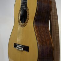 この楽器は弦長630mmのハウザーモデルで、「Movida」と言う名がついています。どこを弾いてもに芯があり、高音はリッチな響きで、低音の鳴りは粘りがあり豊かです。各音のバランスも抜群で大きなホールでも隅々まで響き渡ってくれるでしょう。弦長630mmの特注品でとても弾き易く、非の打ちどころのない、とにかく素晴らしい仕上がりです。【詳細はこちら】